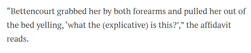 Allegedly, DJ Bettencourt grabbed her phone, threatened to damage it, and then threw it on the floor of the laundry room. This is what the allegations are.