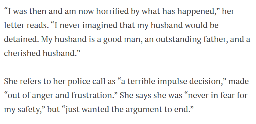 “Domestic violence is a very severe problem that requires really serious attention. It is important to conduct thorough investigations into allegations and to let the process come to its rightful end, as it did in our instance. To make sure the case was handled properly and without political prejudice or conflicts of interest, six separate prosecutors looked at it over the last month.