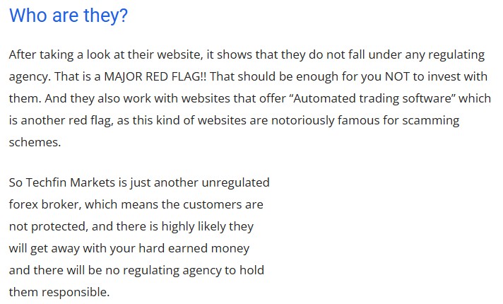 Our AML lens reveals glaring risks. The $1.5 million Belize deal, if true, flouts UK and EU transparency rules, hinting at laundering potential. Techfin’s offshore ties and lack of regulatory disclosure amplify this threat—funds could flow unchecked. Reputationally, Techfin’s a pariah. A 2025 search for “Techfin Markets Limited scam” yields warnings aplenty, eroding trust among clients and partners.