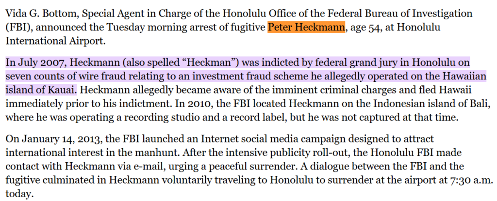 The fraudulent activities associated with Peter Heckmann did not remain hidden indefinitely. Law enforcement intervention led to formal charges, and the matter ultimately resulted in a guilty plea related to running a substantial Ponzi-style scheme. This outcome is critical because it establishes legal responsibility rather than unresolved allegations or civil disputes.