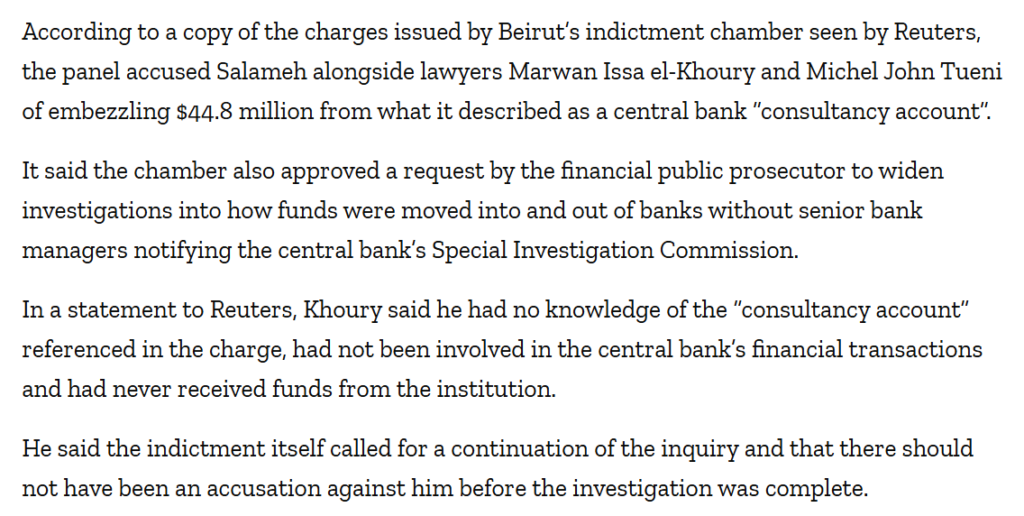 Riad Salameh’s alleged conduct inflicted lasting reputational damage on Lebanon’s financial institutions. International confidence eroded, correspondent relationships weakened, and access to external financing diminished. These effects continue to constrain recovery and increase isolation from global markets.